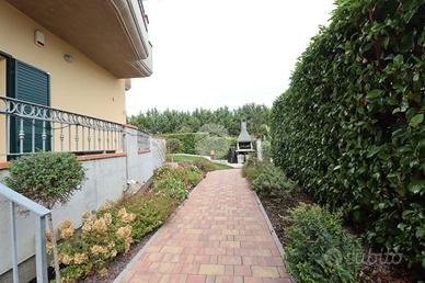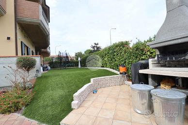 Per acquistare questo immobile devi vendere il tuo? Chiamaci per una valutazione gratuita. Nel cuore di Giulianova Paese, in una zona residenziale e ben servita, proponiamo in vendita un appartamento al piano terra, ampio e luminoso, pensato per offrire comfort, privacy e tecnologie all'avanguardia. L'immobile si distingue per l'esposizione sud-est, che regala luce naturale per gran parte della giornata, e per l'ingresso indipendente, che garantisce massima autonomia e riservatezza. La zona giorno è composta da un soggiorno accogliente e da una cucina, con accesso diretto al balcone, ideale per pranzi all'aperto o momenti di relax. La zona notte, ben separata, è composta da due camere matrimoniali e una camera singola, tutte con accesso al balcone. I due bagni finestrati con box doccia offrono funzionalità e spazi ben organizzati. La casa è dotata di numerosi accorgimenti tecnici e impiantistici di ultima generazione: infissi taglio termico con tapparelle elettriche, cappotto interno, ventilazione meccanica controllata con deumidificazione, raffrescamento a pavimento e fotovoltaico privato da 3 kW. Troviamo,inoltre,un'area esterna esclusiva, oggetto di un intervento di riqualificazione completa realizzato appena tre anni fa. Lo spazio, curato nei minimi dettagli, offre un ambiente accogliente e funzionale, ideale per la convivialità. Il giardino è rifinito con erba sintetica di alta qualità, che garantisce un'estetica ordinata con minime esigenze di manutenzione. Un curato vialetto centrale è incorniciato da siepi sagomate e piante ornamentali selezionate, contribuendo a creare un'atmosfera elegante e armoniosa. A completamento dell'area, troviamo una zona barbecue attrezzata, perfetta per pranzi e cene all'aperto, un impianto di illuminazione a faretti che valorizza lo spazio nelle ore serali, e un grande vaso scenografico con pianta ornamentale, elemento decorativo di forte impatto visivo. Completano la proprietà un garage e una cantina, rendendo questa