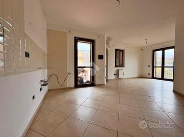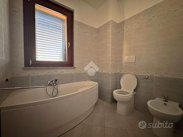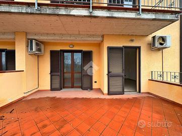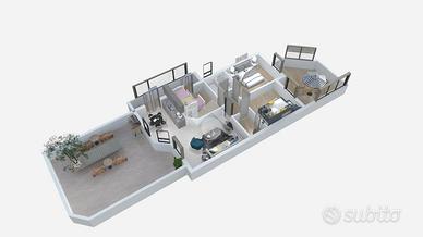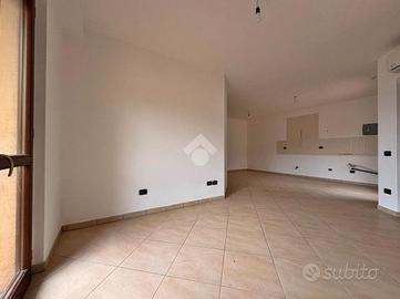 Gualdo Tadino, Via Braccini. A ridosso della zona commerciale del paese, vicino ai principali servizi, disponiamo di un appartamento posto al piano terra di una palazzina di recente costruzione. I lavori di ultimazione della parte esterna sono in corso e la casa sarà consegnata chiavi in mano. Ampio lastrico recintato, ingresso, soggiorno con balcone, cucina, camera con accesso allo stesso balcone del soggiorno, due camere con ampio terrazzo, bagno con doccia e bagno con vasca. Completa la proprietà un comodo garage al piano seminterrato, accessibile tramite una scala esterna.