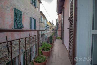 Inserita nel caratteristico borgo di Pontedassio, a pochi passi da tutti i principali servizi offerti dal paese, proponiamo in vendita appartamento su due piani con doppi balconi.