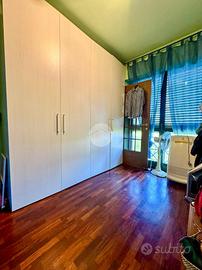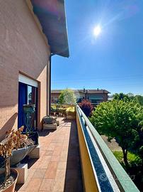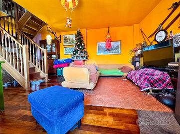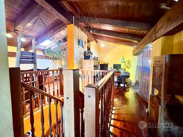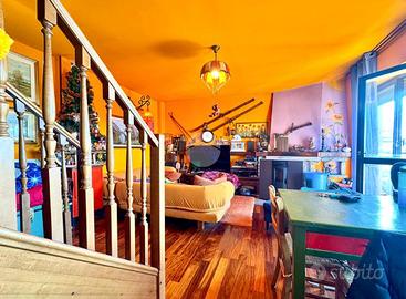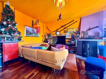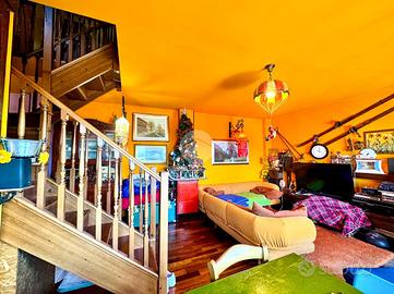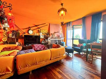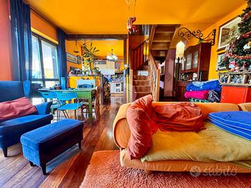 Elegante soluzione abitativa di ampia metratura sviluppata su due livelli, inserita in un contesto condominiale intimo e servito da ascensore. L'ingresso introduce a un disimpegno centrale che distribuisce con armonia gli ambienti principali: una zona living di notevole respiro, impreziosita dalla presenza del camino, una cucina spaziosa e vivibile, un primo servizio con doccia e un secondo bagno completo di vasca. La zona notte accoglie due camere matrimoniali confortevoli e ben proporzionate. L'intero livello principale è esaltato da una splendida terrazza di grande estensione, ideale per momenti di relax o convivialità all'aperto. Attraverso una scala interna in legno si raggiunge il piano superiore mansardato, attualmente concepito come ambiente unico open space, ma con la possibilità concreta di ricavare facilmente due o tre ulteriori stanze o spazi studio, adattandolo così a diverse esigenze abitative. A completare questa interessante soluzione, la presenza di un comodo box auto.