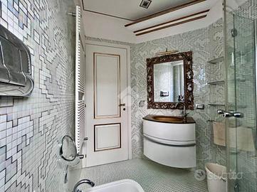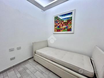 La soluzione, disposta su due livelli, presenta al piano rialzato l'ingresso sulla spaziosa zona giorno con angolo cottura, una camera da letto matrimoniale ed un bagno finestrato con doccia. Tramite una comoda scala in miuratura si accede al piano inferiore in cui troviamo tre camere da letto matrimoniali ed un bagno con vasca da bagno e doccia.