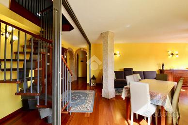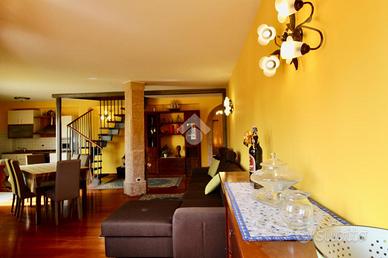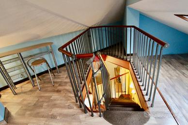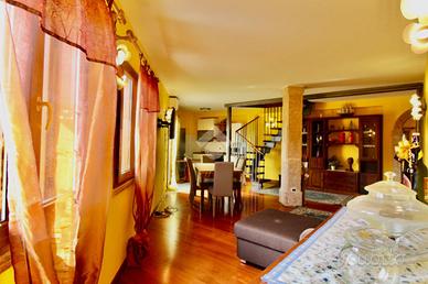 Nel locale soggiorno troviamo una scala in legno che porta al secondo piano mansardato, dove troviamo il ripostiglio, attualmente adibito a camera da letto ed il bagno, cieco, completo di box doccia.