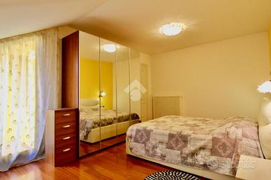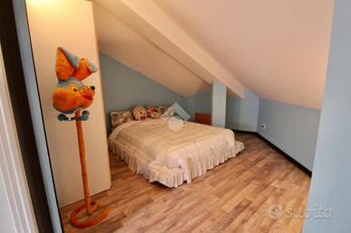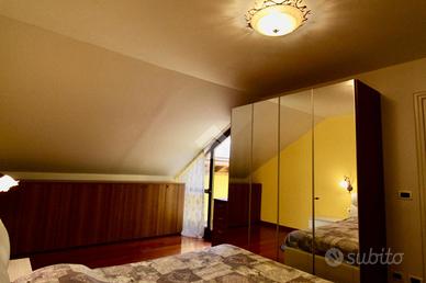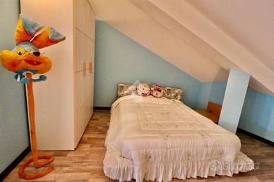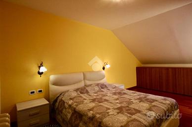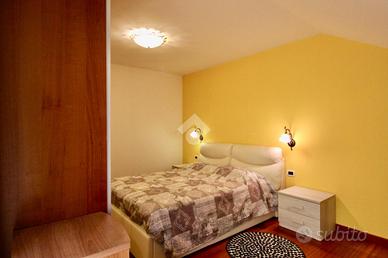 Frontalmente vi è la camera da letto, dotata di armadio a quattro ante, letto matrimoniale e un piccolo armadio in legno, collegata direttamente con un piccolo terrazzo ad uso esclusivo.