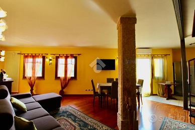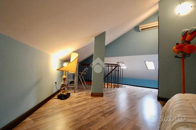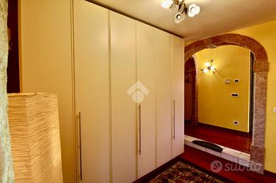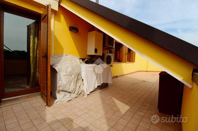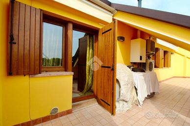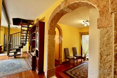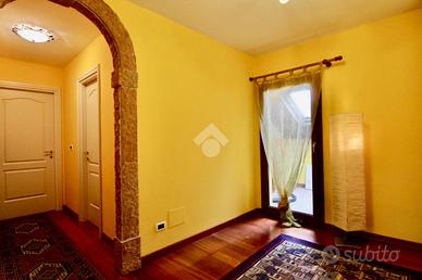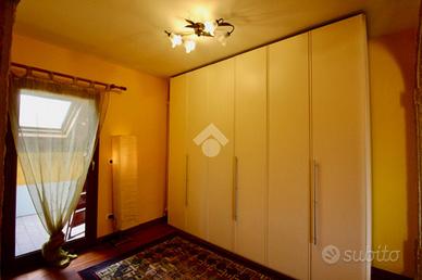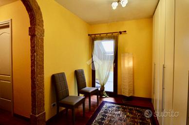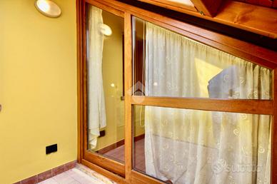 Dal soggiorno, mediante un arco in muratura, accediamo a una piccola stanza living con accesso al terrazzino chiuso con velux, attualmente adibito a lavanderia.