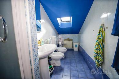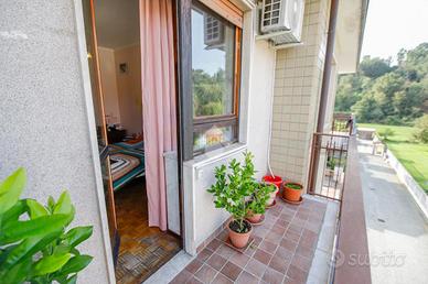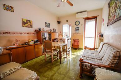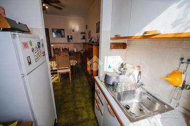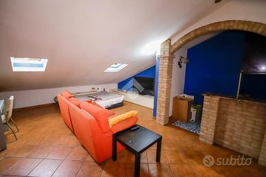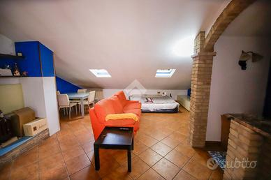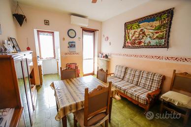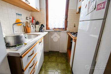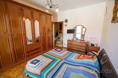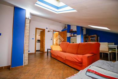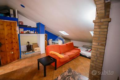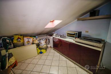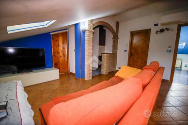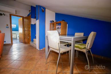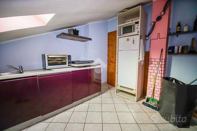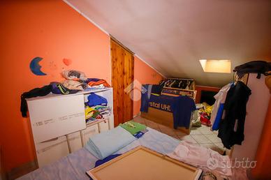 Nella parte bassa del paese, vicino ai principali servizi e alla fermata del pullman, appartamento in piccolo contesto con riscaldamento autonomo. L'ingresso è sull'ampio disimpegno che separa la zona giorno, composta da cucinino con finestra e luminoso tinello con balcone, dalla zona notte che dispone di ampia camera matrimoniale con affaccio sul balcone. Il bagno è dotato di vasca e finestra. Al piano superiore è presente una mansarda rifinita che si compone di tre camere da letto e bagno ristrutturato con doccia. Completa la proprietà la cantina, il box auto singolo ed il posto auto. L'immobile si trova in discrete condizione interne ed è provvisto di infissi con il doppio vetro, impianto di condizionamento e pannelli fotovoltaici da 6 kw.
