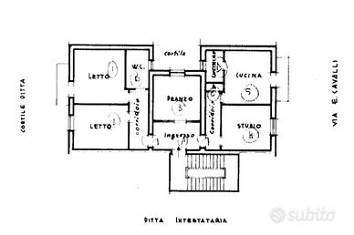 Composto da cinque locali: Ingresso, Salone, Tinello-cucinino, Camera da letto, Cameretta, Studio, Bagno e Ripostiglio.