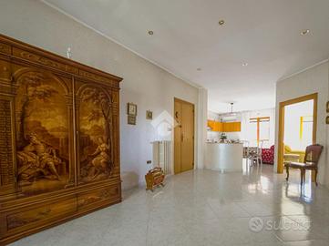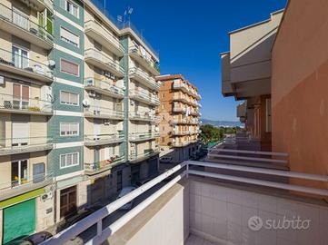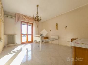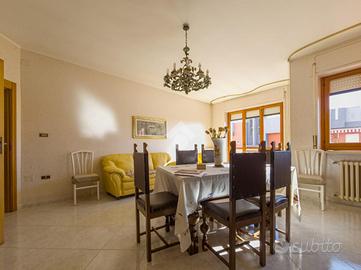 La zona dove è situato l'immobile è principalmente di carattere residenziale, ben servita, con negozi, servizi e trasporti pubblici a breve distanza, rendendo la vita quotidiana comoda e agevole. L'immobile si distingue per la sua tripla esposizione, che garantisce luminosità e ventilazione naturale in ogni ambiente. La generosa metratura offre spazi ben distribuiti, ideali per chi cerca comfort e funzionalità. L'ingresso ampio accoglie e conduce a una cucina abitabile. Il soggiorno spazioso è il luogo ideale per il relax e l'intrattenimento. La zona notte comprende due camere da letto, entrambe dotate di accesso ai balconi, e due bagni, garantendo praticità e privacy, completa la proprietà un comodo ripostiglio. I cinque balconi offrono spazi esterni privati, ideali per godere di momenti all'aria aperta. Buona è la qualità delle rifiniture con pavimentazione uniforme in ceramica, oltre l'impianto di riscaldamento autonomo a gas metano.