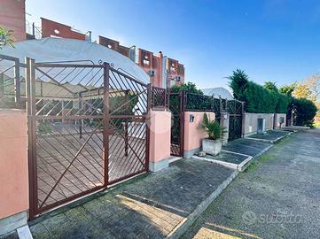 All'esterno, la corte pavimentata offre un ingresso separato per auto e persone, oltre a un comodo posto auto.
