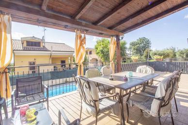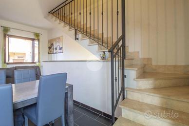 Strategicamente posizionata, all'interno di uno dei comprensori residenziali di Marcellina più ambiti e richiesti, esattamente a Colle Falco, proponiamo in vendita Porzione bifamiliare con giardino e garage. L'abitazione nasce in una zona di recente costruzione in contesto tranquillo, a pochi km dal centro di Marcellina provincia di Roma: raggiungibile comodamente tramite strada asfaltata. La casa ha accesso tramite 2 cancelli il primo carrabile con il cancello elettrico, che permette di raggiungere il box e l'altro pedonale con accesso esclusivo al portico.