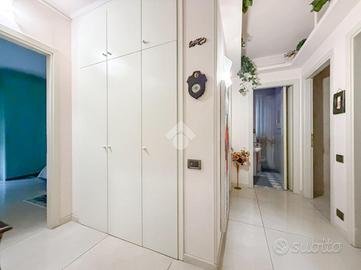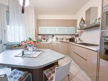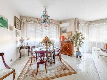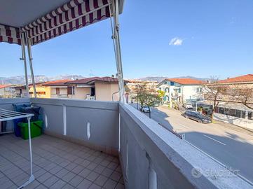 Marina di Massa - In centro, a pochi passi dalla piazza principale e alle spiagge, proponiamo in vendita appartamento di 5 locali, situato al primo piano di palazzina fornita di ascensore. Con doppi servizi, ampia terrazza privata e box auto incluso nel prezzo. L'immobile, recentemente ristrutturato e di ampie metrature, si presenta con l'ingresso che porta alla zona giorno, composta da un'ampia sala luminosa e la cucina abitabile. Tramite porte-finestre si accede all'ampia terrazza e ai due balconi privati. Tramite il disimpegno arriviamo alla zona notte, composta da ben tre camere da letto, di cui due matimoniali e con accesso alla terrazza. La terza camera è singola, può essere anche sfruttata come studio. La casa dispone di doppi servizi, entrambi finestrati. E' presente anche l'impianto di climatizzazione caldo/freddo nelle stanze, il riscaldamento è autonomo a radiatori. Completa la proprietà il box auto privato, situato nel piano seminterrato della palazzina. Questa soluzione abitativa situata vicina al mare e in pieno centro di Marina di Massa, che offre ampie metrature e fornita di box auto, si presta per essere acquistata come prima casa ma anche come casa vacanze per il mare.