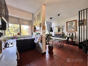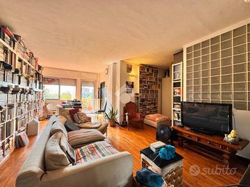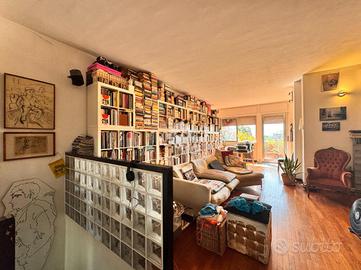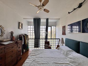 MM S. Leonardo: ci troviamo nel quartiere Gallaratese, a pochi passi dalle fermate della metropolitana S. Leonardo e Bonola, che permettono di raggiungere comodamente e con rapidità i maggiori punti di interesse della città. In pochi metri a piedi è possibile raggiungere comodamente scuole di ogni grado, parchi pubblici, tra cui spiccano il Parco di Trenno e il Bosco in Città nonché il centro commerciale Bonola. L'appartamento è inserito nell'affascinante cornice del Monte Amiata, avveniristico complesso residenziale famoso in tutto il mondo per la sua architettura innovativa e per i servizi condominiali di livello, implementati sempre più dalle iniziative dei residenti, volte a sfruttare i tanti spazi comuni a servizio dei condomini. Il complesso è dotato di due ingressi, di cui uno a pochi metri dalla metropolitana, entrambi presidiati da custodi, ed è immerso in un grande parco condominiale. E' dotato inoltre di videosorveglianza e di un servizio di vigilanza interna. L'immobile, disposto su due livelli, offre una metratura generosa sapientemente distribuita sull'intera superficie. Al piano d'ingresso si trovano l'ampia zona giorno, dominata da una maestosa vetrata con vista sul parco interno che illumina il tavolo da pranzo, capace di ospitare diversi commensali; la cucina a vista ha un suo spazio autonomo che ben si fonde con il resto dell'ambiente, creando continuità funzionale; al piano sono inoltre presenti un ampio vano ripostiglio ed un primo bagno, dove pensare l'angolo lavanderia. Una moderna scala in ferro dalla dolce pendenza conduce al piano superiore, dove ci accolgono un ampio salone con accesso al terrazzo dal quale godere di una piacevole vista sul parco interno; due camere di notevoli dimensioni, una terza camera, un secondo bagno dotato di un ampia vasca idromassaggio e un secondo ripostiglio. I due piani sono raccordati dalla scenografica parete in vetro che contribuisce a donare molta luminosità agli ambienti. L'immobile è perfetto sia per