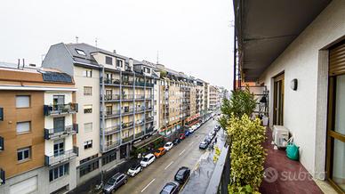 In elegante stabile degli anni '60, ben curato nelle parti comuni, proponiamo in vendita un prestigioso appartamento di cinque locali situato al quarto piano, caratterizzato da spazi generosi, grande luminosità e un'eccellente distribuzione interna. La soluzione, di 162 mq, gode di una tripla esposizione che assicura luce naturale durante tutto l'arco della giornata e di due balconi, elementi che valorizzano ulteriormente la vivibilità degli ambienti. L'ingresso introduce a un soggiorno doppio, ampio e rappresentativo, dal quale, così come da una delle camere da letto, si accede al balcone con affaccio su Via Ajaccio ed esposizione a ovest, ideale per godere della luce pomeridiana. La cucina abitabile, funzionale e ben organizzata, dispone di accesso diretto al secondo balcone, con affaccio sul cortile interno ed esposizione a est, perfetto per momenti di tranquillità e riservatezza. La zona notte ospita tre camere da letto di generose dimensioni e doppi servizi, entrambi finestrati. Uno dei bagni gode di esposizione a sud con affaccio sul cortile interno, completando così la tripla esposizione dell'appartamento e garantendo ulteriore luminosità e aerazione naturale. L'immobile si presenta in ottimo stato interno, pronto per essere abitato senza necessità di interventi. Completano la proprietà una cantina di pertinenza e un comodo posto auto condominiale, valore aggiunto di grande importanza. La posizione è strategica e servitissima: nelle immediate vicinanze si trovano tutti i principali servizi di prima necessità (negozi, supermercati, scuole e attività di quartiere), oltre agli ottimi collegamenti con i mezzi pubblici, grazie alla metropolitana linea blu MM4 con fermata Argonne e al tram 5, che garantiscono rapidi spostamenti verso il centro città e le principali direttrici urbane. Una soluzione ideale per famiglie o per chi è alla ricerca di un'abitazione di ampia metratura, luminosa e funzionale, inserita in un contesto solido e di fascino tipico degli