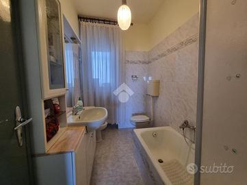 AMPIA METRATURA, VICINO ALLA MM1 BISCEGLIE. A pochi passi dalla MM1 Bisceglie, in stabile con ascensore e giardino condominiale, proponiamo in vendita appartamento di 5 locali sito all'ottavo ed ultimo piano. Il piano alto offre una vista panoramica sulla città e, grazie anche alla doppia esposizione, favorisce luminosità ed il riscontro d'aria all'interno dei locali. L'ingresso conduce alla zona giorno dove troviamo l'ampio soggiorno con ampio balcone e la cucina abitabile, anch'essa servita di balcone; il disimpegno, invece, ci porta alla zona formata dalle quattro camere da letto, dai doppi servizi (uno finestrato con vasca ed uno cieco con doccia) e da un comodo ripostiglio. L'immobile si trova in buone condizioni: i pavimenti sono in ceramica nei servizi e marmette nel resto dei locali, mentre gli infissi sono in PVC doppio vetro. A completare la soluzione vano cantina sita al piano sotterraneo. ------------------------------------------------------ Per maggiori informazioni o per fissare una visita, ci puoi contattare al numero fisso o tramite WhatsApp al Seguici anche su Facebook e Instagram OGNI AGENZIA HA UN PROPRIO TITOLARE ED E' AUTONOMA