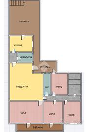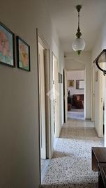 L'immobile: porzione di palazzetto indipendente, appartamento piano primo con il solo ingresso in comune con appartamento al piano terra non compreso nella vendita. La casa, con accesso dal vano scala comune, ha ingresso su corridoio, tre camere da letto oltre al vano oggi adibito a salone, la zona soggiorno con camino è collegata alla cucina ed il bagno. Le condizioni interne della casa sono buone, da rivedere gli impianti non recenti, gli infissi in legno monovetro. A livello due terrazzi collegati lato ovest, oltre i balconi a nord esposti sul corso italia, copre la casa un lastrico solare panoramico.