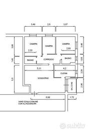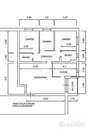 Ingresso su ampia sala, con accesso al balcone, cucina abitabile, zona notte con tre camere da letto e due bagni.