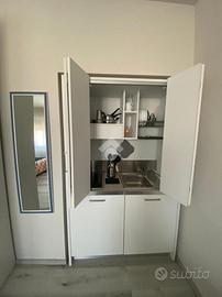 Composto da ingresso, stanza per ricevimento persone e lavanderia con balcone, quattro camere con bagno privato, di cui due con angolo cottura annesso.