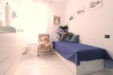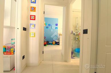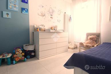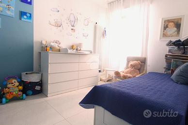 Proponiamo un appartamento con ingresso, ampio soggiorno ampio e luminoso con angolo cottura e balcone, reparto notte composto da due camere matrimoniali, due bagni entrambi finestrati e una terza camera/studio.