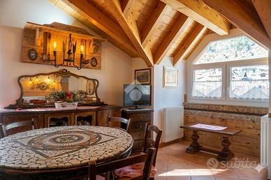 MOLVENO - Centro storico Nel cuore del suggestivo centro storico di Molveno, in Via Guglielmo Marconi, prestigiosa soluzione abitativa di circa 140 mq, disposta su due livelli, inserita nell'esclusiva Residenza Galletti. L'immobile, completamente arredato e pronto da abitare, si distingue per gli ambienti ampi, la luminosità e le splendide viste panoramiche. A secondo piano: raffinata zona living con angolo cottura, caratteristico 'erker' panoramico con affaccio su Piazza Marconi, disimpegno, due camere matrimoniali e bagno finestrato; terzo piano con ulteriore zona giorno con angolo cottura, disimpegno, due camere matrimoniali, ripostiglio, balcone panoramico con vista sulle Dolomiti di Brenta e bagno finestrato. Posizione centralissima e servitissima. Contesto di pregio. Ottima soluzione sia come prima casa che come investimento. Completo di due posti auto coperti (diritto superficiario presso il parcheggio "Le Peschiere"). Una proposta unica per chi desidera vivere Molveno con comfort, stile e una vista esclusiva.