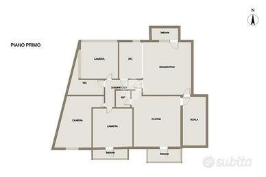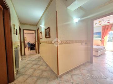 Composto da: doppio ingresso che offre praticità e flessibilità,cucina- soggiorno, corridoio, salone, tre camere da letto spaziose, ognuna con accesso ai balconi, doppi servizi finestrati - uno con doccia, l'altro con vasca, per il massimo comfort, e comodo ripostiglio.