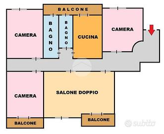 La soluzione è composta da ingresso, salone doppio, cucina abitabile, tre camere da letto, due bagni ed ampi balconi.