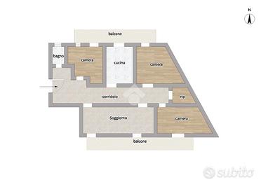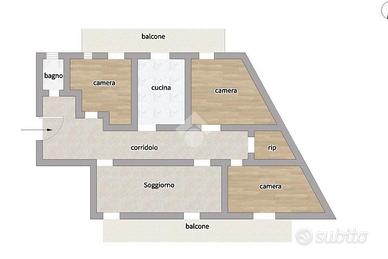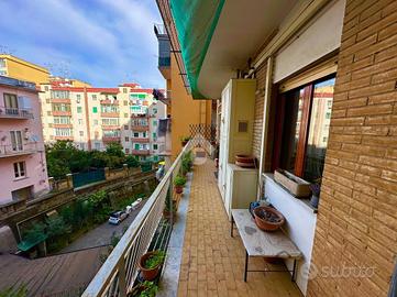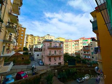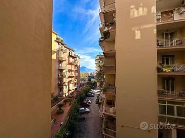 La soluzione, servita da ascensore, si presenta abitabile ed è composta da: ingresso in ampio disimpegno, salone doppio con due punti luce e accesso al balcone, cucina con accesso a un secondo balcone, bagno, ripostiglio e tre camere da letto, tutte luminose grazie ai propri punti luce. La doppia esposizione garantisce un'ottima luminosità e una vista libera, con una piacevole visuale parziale sul Vesuvio, rendendo l'ambiente arioso e confortevole.