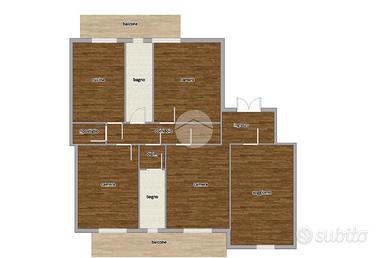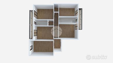 ingresso in disimpegno, ampio soggiorno, tre camere da letto, cucina abitabile, ripostiglio e doppi servizi.