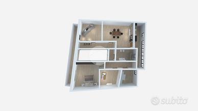 Questa residenza, di circa 135 mq, è pensata per chi cerca spazi comodi, privacy e una posizione strategica. Varcando l'ingresso, si viene accolti da un ampio salotto con sala da pranzo, ambiente perfetto per ricevere ospiti o vivere momenti di relax. Il cucinotto, riservato e funzionale, si integra armoniosamente nella disposizione degli ambienti. Un disimpegno conduce alla zona notte, composta da tre camere da letto ben distribuite, ideali per famiglie o per chi desidera uno studio e una stanza per gli ospiti. Il bagno, anch'esso posizionato in modo intelligente, garantisce comfort e praticità.