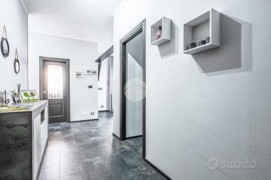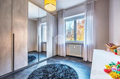 La soluzione sorge nella zona residenziale di Via Dei Cacciatori nelle immediate vicinanze del centro commerciale ''I Viali''. La città di Torino e le principali strade extraurbane sono facilmente raggiundibili. Il condominio senza barriere architettoniche con piano pilotis è dotato di ampio giardino condominiale e posti auto privati. Il portoncino blindato apre sul disimpegno che conduce a tutti gli ambienti dell'abitazione. Il soggiorno risulta di generose dimensioni e gode di affaccio cul balcone privato. A completare la soluzione vi è la cucina abitabile. Le 3 camere da letto matrimoniali della zona notte rendono l'immobile adatto a chi è alla ricerca di ampi spazi. I due bagni sono entrambi finestrati e con affaccio sui 2 balconi dell'abitazione. Vi è inoltre un ripostiglio e una cantina di oltre 10 mq.
