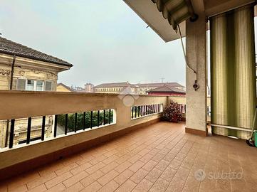 Novi Ligure - a pochi passi da tutti i principali servizi,in vendita raffinato appartamento situato al secondo piano di una palazzina signorile composta da soli 6 appartamenti, contesto riservato e curato. L'immobile è dotato di riscaldamento centralizzato con termovalvole e si distingue per l'atmosfera elegante, la luminosità naturale e la qualità delle finiture. Completano il comfort serramenti nuovi con doppio vetro e porta blindata di nuova installazione, elementi che garantiscono isolamento, sicurezza e tranquillità. L'ingresso si apre sull' ampio e luminoso salotto open space, di grande impatto visivo, ideale per una zona living moderna e rappresentativa, affiancato da una stanza da adibire a studio/ufficio, perfetta per smart working o area relax. Il corridoio, impreziosito da una funzionale nicchia ad uso ripostiglio, separa in modo armonioso la zona giorno dalle altre stanze. La zona notte è composta da due camere da letto, la singola ha accesso sul balcone restostante, mentre la camera da letto matrimoniale è ampia e luminosa, sono pensate per offrire comfort e privacy. La cucina abitabile, ampia e luminosa, gode anch'essa di affaccio sulla grande terrazza angolare. La presenza proprio di questa ampia ed angolare terrazza frontale e di un secondo balcone con affaccio sul cortile condominiale interno dona all'appartamento eccezionale luminosità, ariosità e un piacevole senso di relax. Pertinenza importante: possibilità di acquisto di box auto doppio situato all'interno del cortile condominiale, elemento raro e di grande valore in posizione centrale. Soluzione ideale per chi desidera un'abitazione elegante, luminosa e di livello, nel pieno centro cittadino.