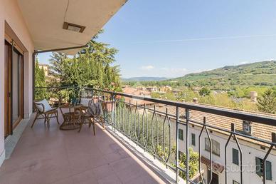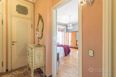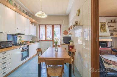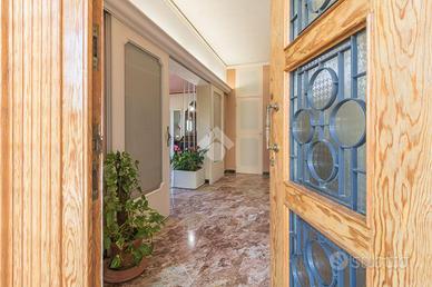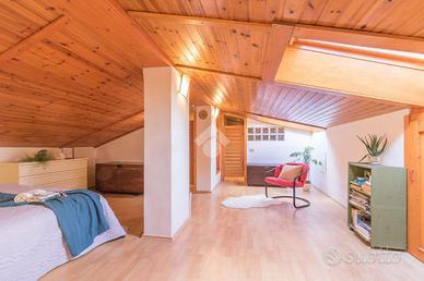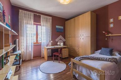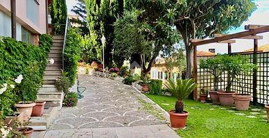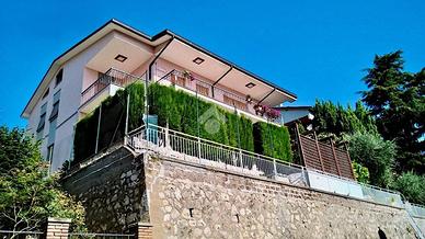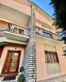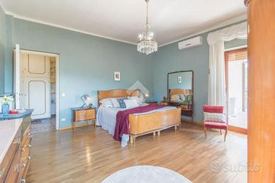appartamento al primo piano di una villa bifamiliare. L'appartamento dispone di un doppio salone, uno dotato di un grande balcone con vista panoramica e l'altro soggiorno con caminetto. Cucina abitabile e luminosa e sono presenti due camere da letto, oltre a uno studio. Il piano residenziale è circondato da quattro balconi perimetrali. Completa la proprietà la mansarda di circa 60 mq, composta da camera, bagno e cabina armadio. Annesso locale di 126 m², adibito a garage e cantina, un vero plus per chi cerca spazio extra. Il giardino circostante con quattro ingressi, due carrabili (di cui uno elettrico) e due pedonali, rendendo l'accesso comodo e pratico, mentre la posizione centrale e comoda garantisce la vicinanza alla stazione e ai servizi principali. Questo appartamento, in buono stato e dotato di riscaldamento autonomo, impianto di condizionatori, sistema di videosorveglianza e video citofono. Questa è una soluzione ideale per chi cerca un'atmosfera riservata e tranquilla senza rinunciare alla comodità della vita urbana. Non perdere l'opportunità di visitarlo! Caratteristiche di base 321 m2 commerciali 5 locali 2 Bagni Terrazza Garage o posto auto compreso Seconda mano/Buono stato Cantina Piano 1 Senza ascensore Attestato di prestazione energetica: In corso