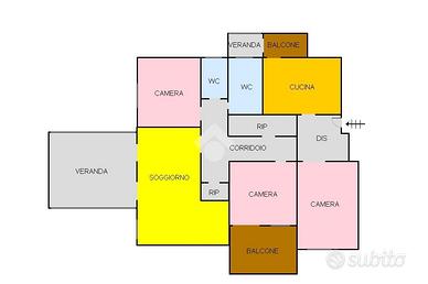 L'APPARTAMENTO - è composto da ingresso su disimpegno, salone doppio, 3 camere da letto di cui una con balcone, cucina semi - abitabile con annesso balcone, veranda di collegamento, due bagni di cui uno con vasca ed uno con doccia entrambi finestrati e due ripostigli.