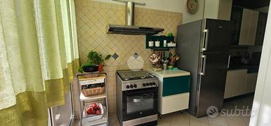 La cucina è accessibile tramite una porta scorrevole; semi-abitabile ma grazie alla sua dimensione e alla comoda veranda annessa, offre spazio sufficiente per ogni esigenza, rendendo l'ambiente pratico e funzionale.