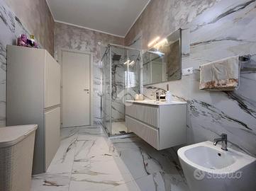 La zona giorno comprende un salone con balcone ed una cucina abitabile con veranda. Un disimpegno conduce alla zona notte con 3 camere da letto di cui una con wc, ripostiglio e bagno.