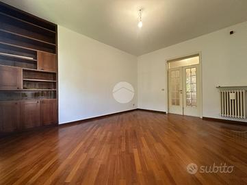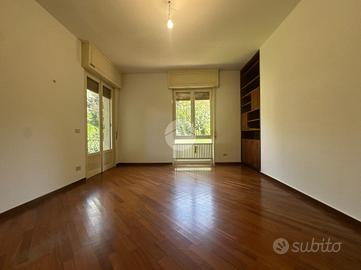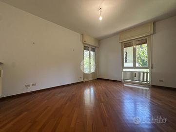 Nel cuore del quartiere Montebello, ubicato in favoloso e silenzioso contesto, circondato da raffinate abitazioni e dal verde del parco, proponiamo in esclusiva ampio, signorile e suggestivo appartamento di circa 180mq. l'immobile, facente parte di una bifamiliare in ottime condizioni, è inserito in un contesto elegante e privato (solo 2 unità) e si sviluppa su 2 livelli (piano rialzato + piano terra). L'appartamento, essendo libero su tutti i 4 lati, gode di un'ottima esposizione e luminosità per tutto il giorno. Si compone al piano rialzato di ingresso, spazioso, accogliente ed elegante soggiorno con affaccio sullo sfogo esterno di loggia/terrazzino, cucina separata con tinello, che può diventare comodamente un open space ottimizzando e ridistribuendo gli spazi, disimpegno zona notte con 3 camere da letto di cui 2 comode ed ampie matrimoniali con affaccio sul verde del giardino e sulla profonda balconata, una camera singola e 2 bagni di cui uno molto spazioso e funzionale di 9mq che può esser utilizzato anche come bagno/lavanderia con sfogo esterno sulla stessa balconata. Tramite una scala interna ma anche tramite camminamento pedonale esterno si accede al piano terra dov'è situata la taverna, una metratura jolly, la quale può esser utilizzata come stanza studio, svago, hobby, palestra od anche come camera da letto essendo finestrata e fuori terra.