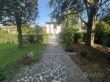 L'appartamento è impreziosito da un porticato privato che può esser utilizzato anche come posto auto coperto interno e da 2 fette di giardino privato di proprietà di 150mq totali, dove potersi rilassare all'aperto, organizzare cene con amici/parenti in un ambiente sereno riservato e tranquillo.