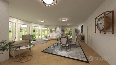 L'eleganza della residenza è valorizzata da un curato parco comune che circonda l'abitazione e da un comodo box auto privato.