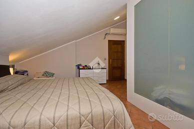 Attraverso un'elegante scala interna si accede al piano superiore dove si sviluppa la zona notte, composta da due camere da letto e dal secondo bagno.