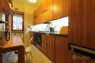 L'immobile presenta una tripla esposizione e si sviluppa su una pianta ampia e funzionale. L'ingresso conduce a una zona giorno composta da ampio soggiorno, cucina con tinello e studio, mentre la zona notte offre tre camere da letto e due bagni, entrambi finestrati e un comodo ripostiglio con finestra, ideale come lavanderia o utile spazio di servizio.