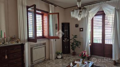 L'appartamento: primo piano con doppio ingresso, uno da vano scale comune più ingresso indipendente da scale esterne al balcone della casa. Salone spazioso, tre camere da letto e una cucina soggiorno ampia, bagno e lavanderia con servizio entrambi finestrati, oltre al ripostiglio, tutti gli ambienti sono disimpegnati da un corridoio. Le condizioni interne sono buone, impianto elettrico seppur risalente alla costruzione ma certificato, i bagni originali alla costruzione, pavimento per buona parte in marmo, infissi in legno monovetro. In generale la casa si presenta in ottime condizioni. Compreso nella vendita un posto auto di proprietà.
