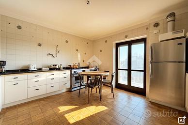 Proponiamo in vendita a Pinerolo, nella centralissima zona San Lazzaro, comoda a tutti i principali servizi e adiacente all'ufficio postale, ampio appartamento di cinque locali situato al terzo piano di una palazzina dotata di ascensore. L'immobile si apre su un comodo ingresso che conduce ad un grande soggiorno con affaccio su Via Bignone tramite un piacevole terrazzo, ideale per momenti di relax all'aperto. La cucina è abitabile e dispone di un balcone che si affaccia sul tranquillo cortile interno del condominio. La zona notte è composta da tre camere da letto, tutte rifinite con uno splendido parquet in ottime condizioni, e da due bagni, uno dotato di vasca e l'altro di doccia. Il riscaldamento è autonomo e gli infissi in legno con doppi vetri garantiscono un buon isolamento termico e acustico. Completano la proprietà una cantina al piano seminterrato, raggiungibile direttamente con l'ascensore e un box auto. Soluzione ideale per famiglie o per chi desidera vivere in una zona servita senza rinunciare a spazio e comfort. Le immagini mostrate sono render grafici realizzati a scopo puramente illustrativo. Per maggiori informazioni o per una valutazione del vostro immobile contattateci al o al