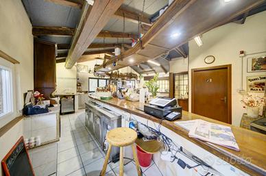 Il piano terra ospita lo storico e rinomato ristorante 'Il River Side', un punto di riferimento locale già pronto all'uso: l'ingresso accoglie i clienti in una funzionale zona bar con bancone, che precede due ampie sale dedicate alla ristorazione e una cucina professionale completamente attrezzata.