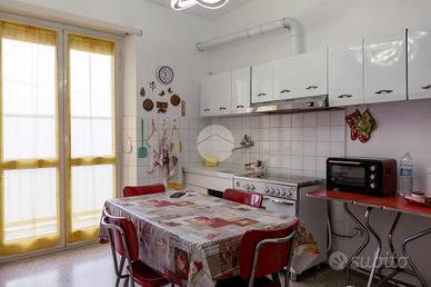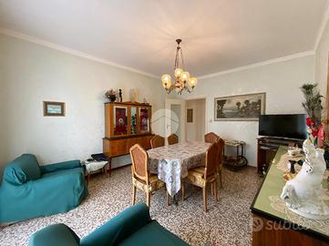 In una zona comoda e ben servita, ampio appartamento situato al secondo piano. Pur non essendo presente l'ascensore, l'edificio è dotato di un pratico montacarichi ad uso condominiale. L'immobile si distingue per la sua disposizione funzionale e gli ambienti generosi, ideali per famiglie o per chi desidera vivere in spazi comodi e ben organizzati. L'appartamento è composto da un ingresso in corridoio, attorno al quale si sviluppano i vari locali suddivisi in: luminoso soggiorno, cucina abitabile, tre camere da letto spaziose, ripostiglio e un bagno. L'alloggio gode di una splendida illuminazione naturale, garantita dalle ampie finestre dotate di serramenti nuovi e tapparelle elettriche. Completa la soluzione una cantina al piano interrato. La posizione al secondo piano e la presenza di quattro balconi assicurano tranquillità, privacy e una piacevole vista aperta sui dintorni.