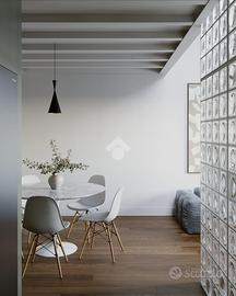 L' appartamento situato al primo piano è composto da : ampia e luminosa zona giorno open - space, mentre zona notte può essere configurata con una o due camere da letto, a seconda delle esigenze, accompagnate da un bagno.