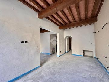 Appartamento in bifamiliare primo piano - Moderno ed elegante, in fase di ristrutturazione. Oltre al primo piano, vi è la possibilità di acquistare separatamente l'appartamento al piano terra: tre vani con giardino privato e una dependance che si presta a diventare un secondo appartamento con soppalco.
