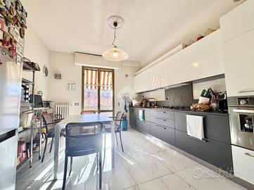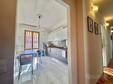 La zona notte è composta da tre camere, due delle quali si affacciano direttamente sul balcone del soggiorno grazie a eleganti porte-finestre che garantiscono luce e continuità visiva con l'esterno. La terza camera è attualmente utilizzata come lavanderia, offrendo grande flessibilità d'uso. Completano la disposizione interna un bagno completamente ristrutturato, dotato di finestra e moderna doccia, e un comodo ripostiglio.