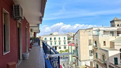 Il bagno, dotato di finestra e doccia, è funzionale e ben posizionato, mentre la cucina, ben attrezzata, offre un ulteriore balcone con vista verso il mare, permettendo di apprezzare panorami mozzafiato anche mentre si cucina. Infine, il soggiorno è un ambiente accogliente, arricchito da un terzo balcone con affaccio verso il mare, perfetto per cene all'aperto o semplicemente per godere della vista.