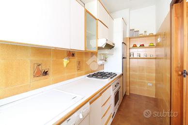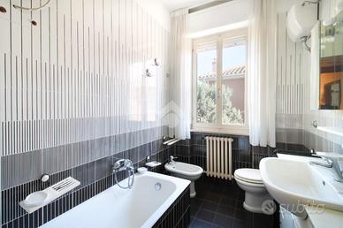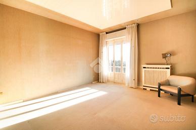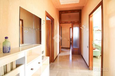 La soluzione è composta da corridoio di ingresso, soggiorno con affaccio al primo balcone, sala da pranzo con retro cucina ed affaccio al secondo balcone. Tramite il disimpegno accediamo alla zona notte composta da due camere matrimoniali, entrambe con balcone, la terza camera da letto ed il bagno finestrato con vasca.
