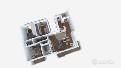 La presenza di tramezzature interne, infatti, consente una facile ridistribuzione degli ambienti, rendendo la soluzione adatta per una famiglia numerosa, per due famiglie o per chi cerca un'abitazione con doppia destinazione.