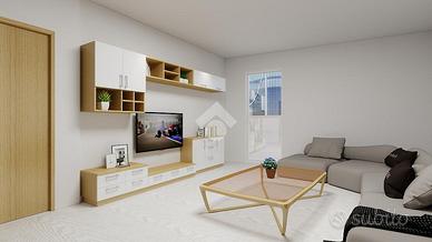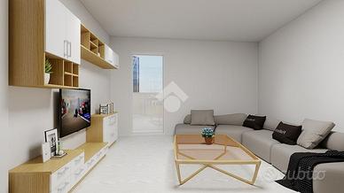 Si ha accesso su un ampio ingresso arredabile, sulla destra troviamo la zona giorno composta da una cucina abitabile ed un soggiorno di circa 20 mq, con accesso ad un balcone che si estende per tutta la facciata. La zona giorno è dotata di un suo servizio, che permette di garantire la privacy degli ambienti più riservati dell'immobile.