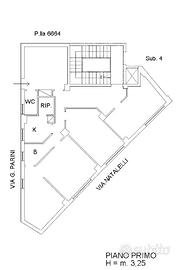 L'immobile è composto da cinque stanze ampie, due servizi e un cucinino, gode inoltre di un doppio ingresso uno dal portone condominiale al primo piano e un accesso laterale a piano terra. Completa la vendita un garage di mq 18.
